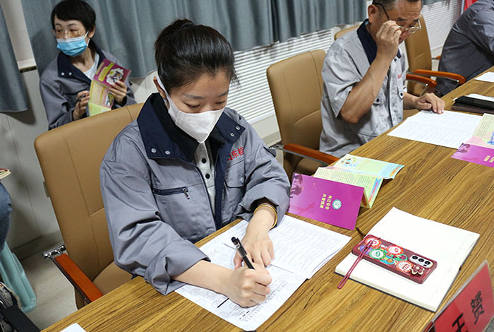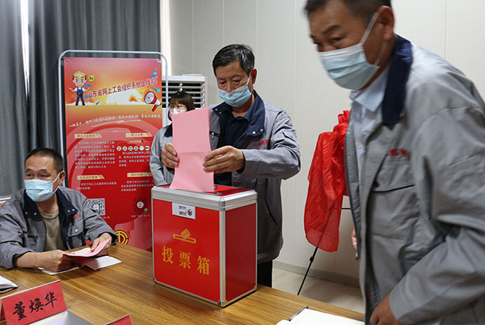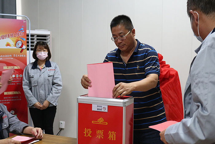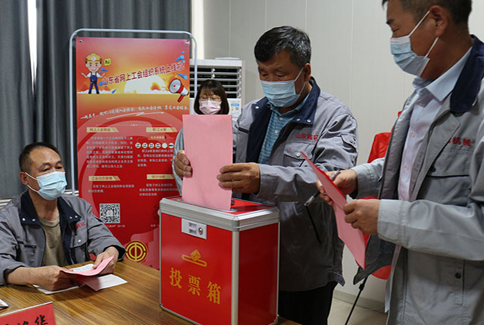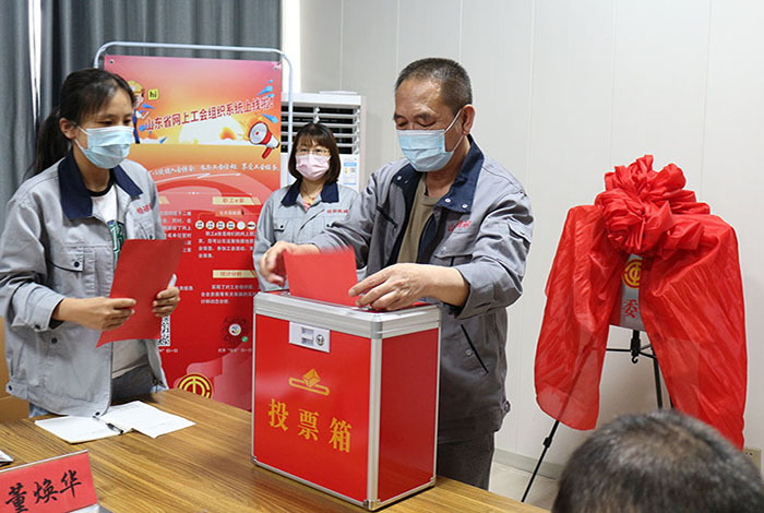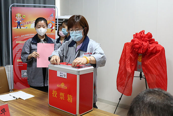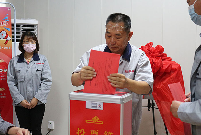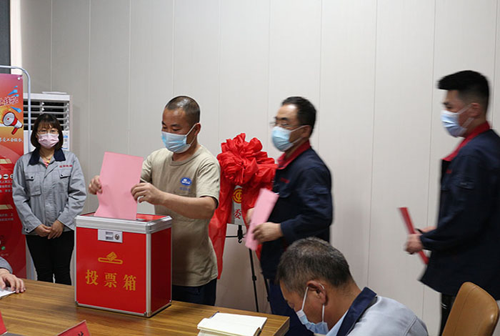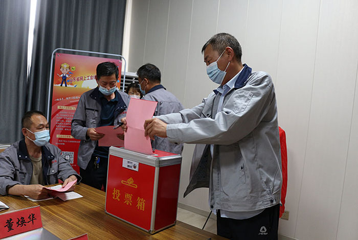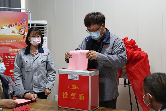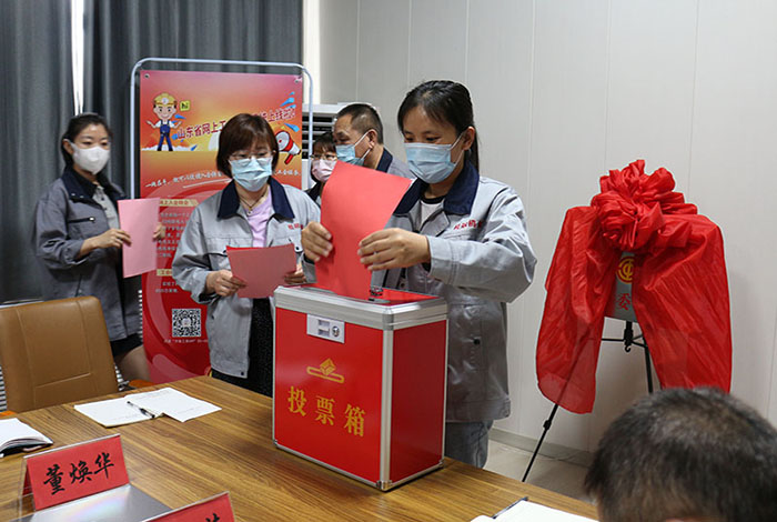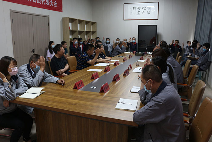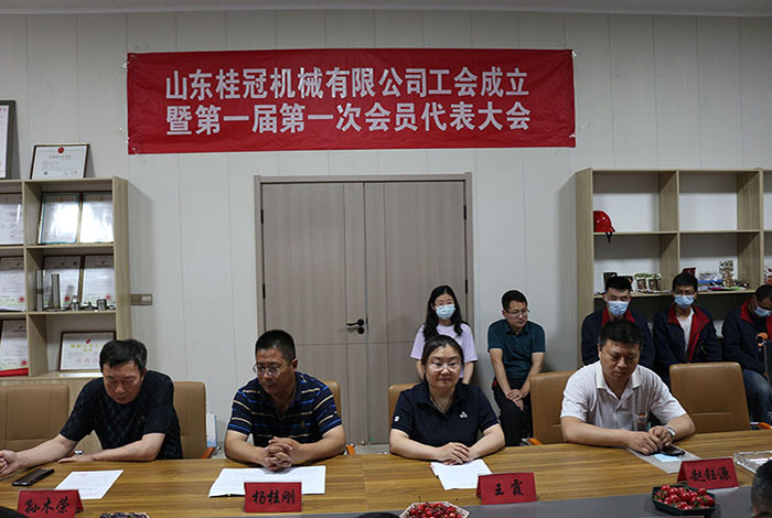 2022年06月16日山東桂冠機(jī)械有限公司一屆一次工會會員代表大會會議準(zhǔn)時召開,出席本次工會會議重要領(lǐng)導(dǎo)人員有:市總工會黨組成員副主席王霞同志,濱河片區(qū)黨工委副書記王澤和同志,桂冠機(jī)械有限公司董事長楊桂剛同志等相關(guān)領(lǐng)導(dǎo),在濱河片區(qū)總工會專職副主席孫木榮宣讀完市總工會《關(guān)于同意召開山東桂冠機(jī)械有限公司工會一屆一次會員代表大會的批復(fù)》后,出席本次會議的25名公司在職人員在兩位選舉檢票人的監(jiān)督下通過《選舉辦法》民主選舉出公司第一屆工會委員會主席及委員,工會經(jīng)費(fèi)審查委員會主席及委員,審議通過公司第一屆女職工委員會,勞動爭議調(diào)解委員會。
